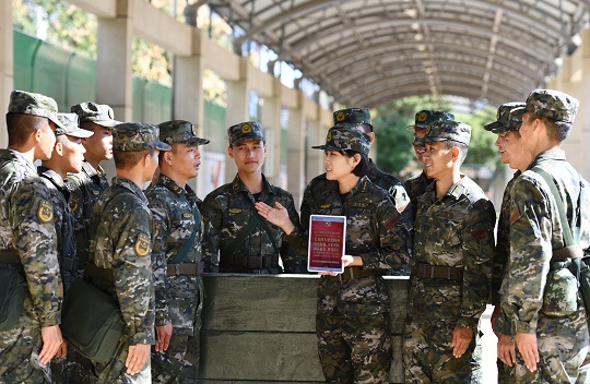 圖為武警湖北總隊(duì)機(jī)動(dòng)支隊(duì)學(xué)習(xí)宣傳貫徹黨的二十大精神,理論骨干深入一線為官兵進(jìn)行理論輔導(dǎo)授課。饒博文 攝