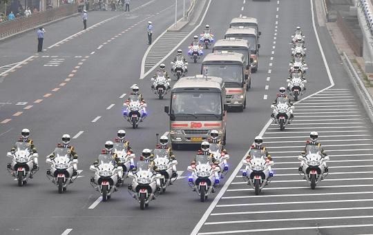 圖為2021年7月1日圓滿完成“七一勛章”頒授儀式摩托車護衛(wèi)任務(wù)。李響 攝