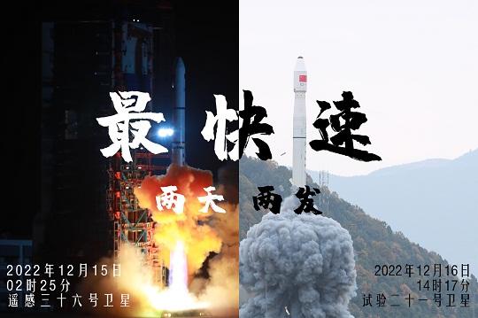 12月15日、16日,西昌衛(wèi)星發(fā)射中心陸續(xù)將遙感三十六號(hào)衛(wèi)星和試驗(yàn)二十一號(hào)衛(wèi)星發(fā)射升空。間隔僅一天,連續(xù)組織實(shí)施2次發(fā)射,創(chuàng)造了該中心發(fā)射間隔時(shí)間最短的新紀(jì)錄。