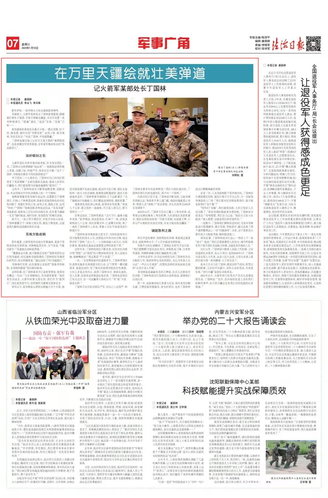2021年12月,火箭軍舉行優(yōu)秀共產黨員先進事跡報告會,丁國林說:“也許,在沙場的征途上沒有我們的鮮花掌聲,但萬里天疆必定有我們共同繪就的壯美彈道?!?/p>