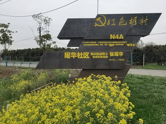 南京市江寧區(qū)是抗戰(zhàn)時(shí)期革命老區(qū)之一,在湯銅大道后湖村口,有座鋼鐵雕塑格外引人注目,上面寫(xiě)著:“紅色湖村——1949年江寧解放后,人民政府在烈士戰(zhàn)斗和犧牲的地方設(shè)置了‘耀華鄉(xiāng)’,無(wú)論社區(qū)建制如何調(diào)整,英雄的名字‘耀華’都緊緊相連,耀華社區(qū)是以抗戰(zhàn)烈士張耀華的名字命名。”
