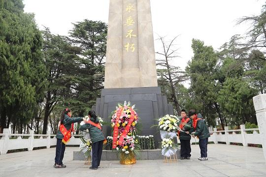 3月31日,南京市上元中學(xué)學(xué)生徒步近3公里來(lái)到仲銘橋頭仲銘亭前,祭掃鄧仲銘烈士碑。