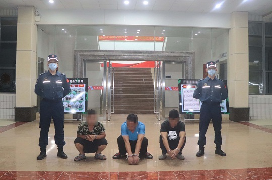圖為執(zhí)法員抓獲嫌疑人3名。
