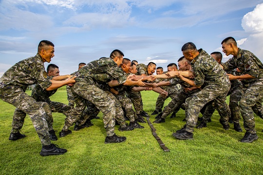 圖為武警官兵開展“跳山羊”活動(dòng)。