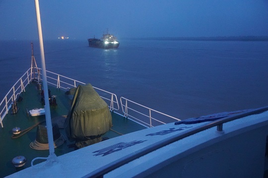 6月18日8時(shí),上海海警局執(zhí)法艇在長(zhǎng)江口南槽航道附近海域巡邏時(shí),發(fā)現(xiàn)一艘貨船使用的是篡改后的AIS,屬于“套牌船”。執(zhí)法艇靠前對(duì)其進(jìn)行喊話示警,并登臨檢查該船。經(jīng)查,該船共有6名船員,裝載牛肚等凍品約200噸,案值約2000萬(wàn)元。