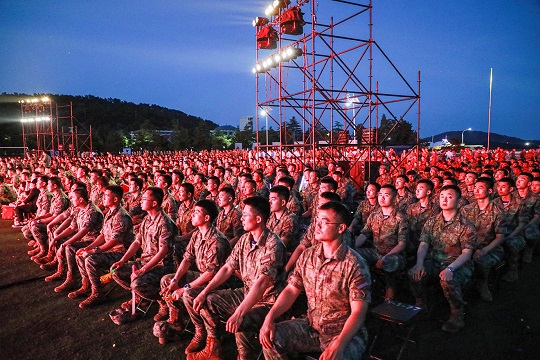 《星辰大?!贰秹阎撅w揚(yáng)》《追光》《歌唱祖國》等勵(lì)心勵(lì)志,深情婉轉(zhuǎn),表達(dá)著官兵奮進(jìn)向上、矢志深藍(lán)的熱忱決心。