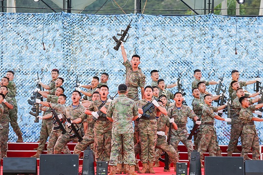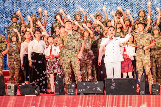 稚嫩的童音伴著雄壯的吶喊,純真的笑臉映著剛毅的眼神。希望與守護(hù)的和諧交融,深深感動(dòng)著每一名現(xiàn)場觀眾。