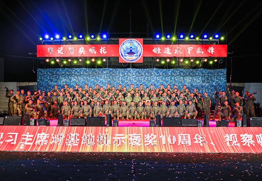 鑼鼓隊(duì)、舞蹈隊(duì)、武術(shù)隊(duì)等6支特色隊(duì)組共同唱響氣勢雄渾的《礪劍深藍(lán)》原創(chuàng)歌曲,展現(xiàn)官兵精武保障、扎根深山、向深藍(lán)的堅(jiān)定信念。