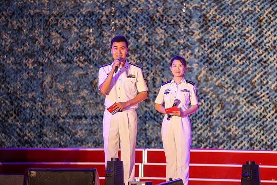 《岸訓(xùn)之歌》《壯志飛揚(yáng)》《渴望光榮》《鯨港尖兵》等,演唱中靈活加入旗語、舞蹈、捧燈等元素,讓真情流露,讓情感升華。