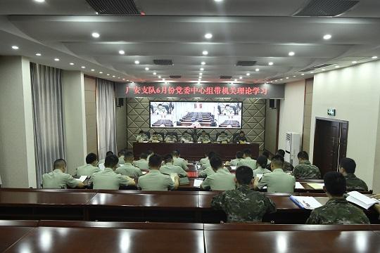 圖為武警廣安支隊(duì)組織理論學(xué)習(xí)。