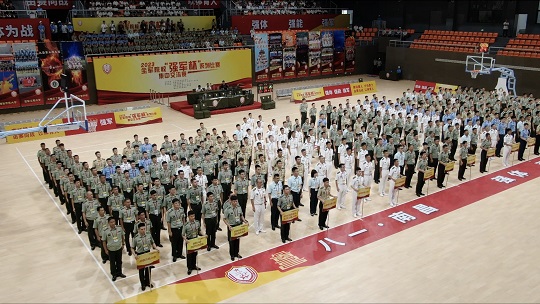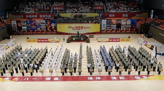 圖為8月1日上午,2023全軍院?!皬?qiáng)軍杯”系列比賽、集中交流賽在南昌市八一體育館舉行開幕式。傅明鐘 攝
