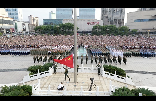 圖為8月1日上午,全軍院?!皬?qiáng)軍杯”系列比賽集中交流賽560余名官兵與南昌市相關(guān)代表集合在南昌八一廣場參加升旗儀式。劉宇龍 攝
