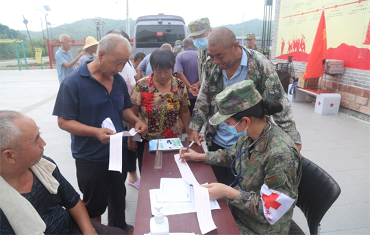8月9日一早,河北省軍區(qū)石家莊第三干休所醫(yī)療服務(wù)隊(duì)攜帶血壓計(jì)、心電圖機(jī)、血糖檢測(cè)儀等醫(yī)療設(shè)備驅(qū)車一百多公里,來到太行山深處的革命老區(qū)——河北省贊皇縣黃北坪村,為剛剛受到暴雨山洪侵襲的村民進(jìn)行健康體檢、常見病篩查及災(zāi)后防疫宣講。