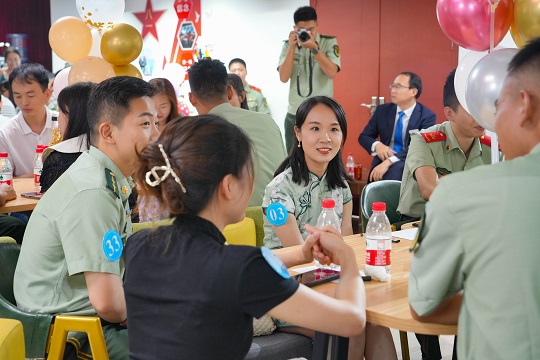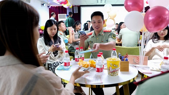 踩著音符,迎著微風(fēng),應(yīng)邀出席的女嘉賓走進廣東海警局,在海天的見證下共赴一場浪漫的海疆之約。在“相約鵬城海疆·共敘幸福人生”交友聯(lián)誼會活動現(xiàn)場,男女嘉賓領(lǐng)取屬于自己的“緣分號碼牌”,圍坐交流。廣東海警局執(zhí)法員馬運澤來到女嘉賓的座位旁,大方介紹自己,女嘉賓也積極回應(yīng)。經(jīng)過一番交流,雙方互有好感,一同拍下合影。