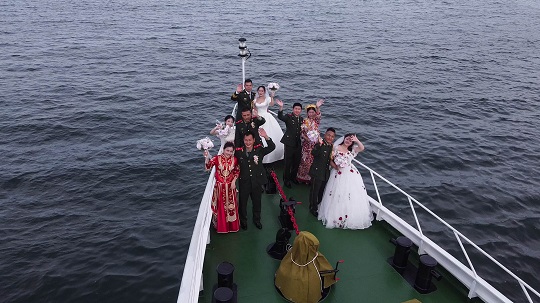 相遇于那個城市,萌芽于露朝;相知于那座海島,升華至初曉;相約于這場盛宴,定格成坐標。當浪漫與忠誠互成一色,愛情與國家融為一體,都將化為潔瑩的浪花,在祖國的萬里海防上生生不息。