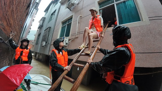 武警福建總隊(duì)寧德支隊(duì)接到命令后,立即啟動(dòng)應(yīng)急處置預(yù)案,派出60余名官兵攜帶6臺(tái)沖鋒舟、2艘皮劃艇和救生衣等各類搶險(xiǎn)裝備、救援器材趕赴受災(zāi)地域。針對(duì)受災(zāi)地域雨勢(shì)較大、漂浮物較多、救援現(xiàn)場(chǎng)街道狹小的情況,武警官兵駕駛沖鋒舟,使用梯子轉(zhuǎn)移高樓層群眾。官兵們?cè)跊_鋒舟上通力合作,一組人員扶梯子轉(zhuǎn)移群眾,另一組人員使用工具固定漂浮的船只,將群眾安全轉(zhuǎn)移到?jīng)_鋒舟上。結(jié)合水位仍在上漲的實(shí)際,官兵還給留守村民送去食物和飲用水。