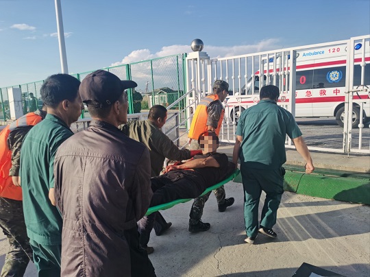 9月1日15時10分,丹東海警局接報警稱,遼丹漁25489號船一名船員在作業(yè)時因操作不慎右臂被機器卷入,造成粉碎性骨折,處于大量失血狀態(tài),但漁船靠港需4個多小時,急需海警救援。接警后,丹東海警局立即派遣附近海域巡邏的執(zhí)法快艇全速救助。15時50分許,受傷漁民被轉移至執(zhí)法快艇,執(zhí)法員一邊安撫傷員情緒,一邊聯(lián)系救援力量前往碼頭準備接應。16時30分,執(zhí)法快艇抵達附近港口后,受傷船員被送上救護車。從接警到成功將受傷漁民送至救護車,丹東海警局僅用時約1小時20分,為受傷漁民爭取了寶貴的救援時間。目前,該船員因救助及時,已無生命危險。
