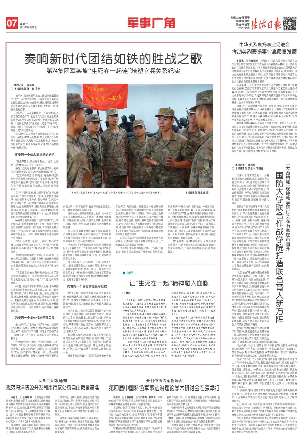 “生死在一起連”始終堅持“帶兵先帶情、聚力先聚心”,連隊官兵不斷厚植團結相依、風雨相持的戰(zhàn)友情誼,賡續(xù)傳承優(yōu)良傳統(tǒng)、密切新時代官兵內(nèi)部關系。