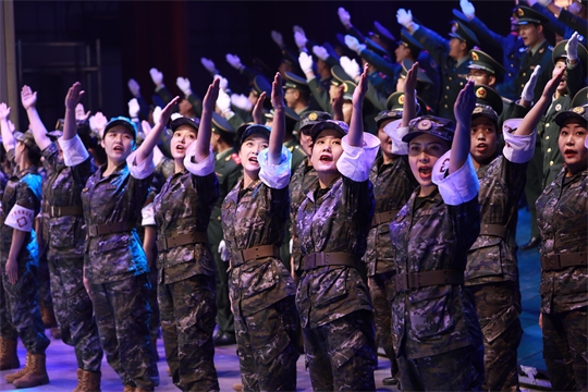 “向前,向前,向前,我們的隊(duì)伍向太陽……”最后,會場響起威武雄壯的《中國人民解放軍軍歌》,全體官兵齊聲高歌,士氣如虹。