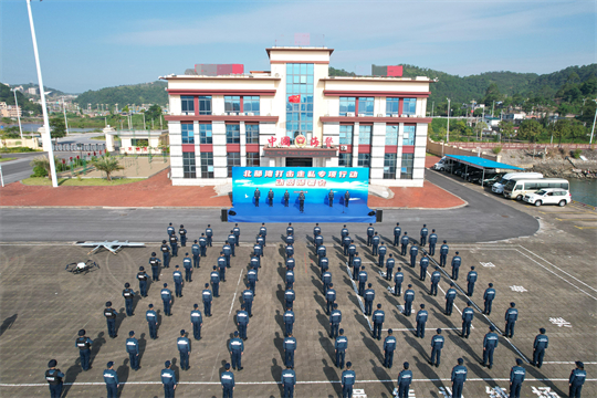 10月13日上午,專(zhuān)項(xiàng)行動(dòng)在廣西壯族自治區(qū)防城港市正式打響,海警執(zhí)法艦艇汽笛齊鳴,按照既定部署駛向任務(wù)海域。