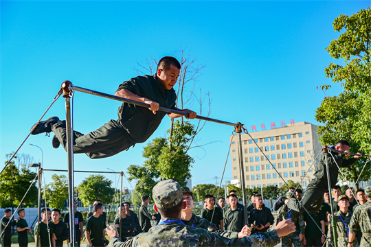 投擲場上,參賽隊(duì)員將體能與技能完美結(jié)合,演繹著不一樣的“速度與激情”。30X2蛇形跑賽場上,他們重心壓低,一路漂移。五公里武裝越野、運(yùn)送彈藥箱、防暴彈投擲……這些火藥味兒十足的項(xiàng)目營造出精武強(qiáng)能的氛圍,讓參賽隊(duì)員在賽場上淬煉勇于爭先的品行意志,錘煉過硬戰(zhàn)斗本領(lǐng)。他們把體育精神融入戰(zhàn)斗精神,在賽場上揮灑汗水,在比拼中錘煉血性,讓青春活力和激情熱血在賽場上同頻共振。