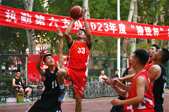 “要通過文體競賽把隊(duì)員的士氣提起來,更要把部隊(duì)敢于亮劍打勝仗的魂鑄牢。”該支隊(duì)政治委員盧金偉說。為此,該支隊(duì)充分發(fā)揮體育競賽的激勵(lì)促進(jìn)作用,根據(jù)年度強(qiáng)軍文化活動(dòng)安排,立足以建制中隊(duì)為單位組建籃球隊(duì)、機(jī)關(guān)組建一支籃球隊(duì),采取循環(huán)賽、小組賽相結(jié)合的方式,組織支隊(duì)2023年“精銳杯”籃球聯(lián)賽,最大程度調(diào)動(dòng)所有官兵參與其中?;钴S官兵業(yè)余文化生活的同時(shí),也在競技場上砥礪官兵敢打必勝的血性膽氣。