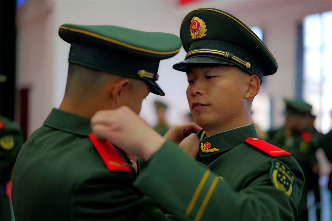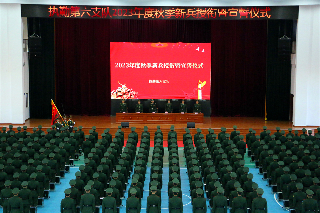 近日,武警北京總隊執(zhí)勤第六支隊新兵大隊舉行2023年度秋季入新兵授銜暨入伍宣誓儀式。經(jīng)過三個多月淬火錘煉,新兵們褪去青澀收獲成長,迎來屬于他們的“成人禮”。