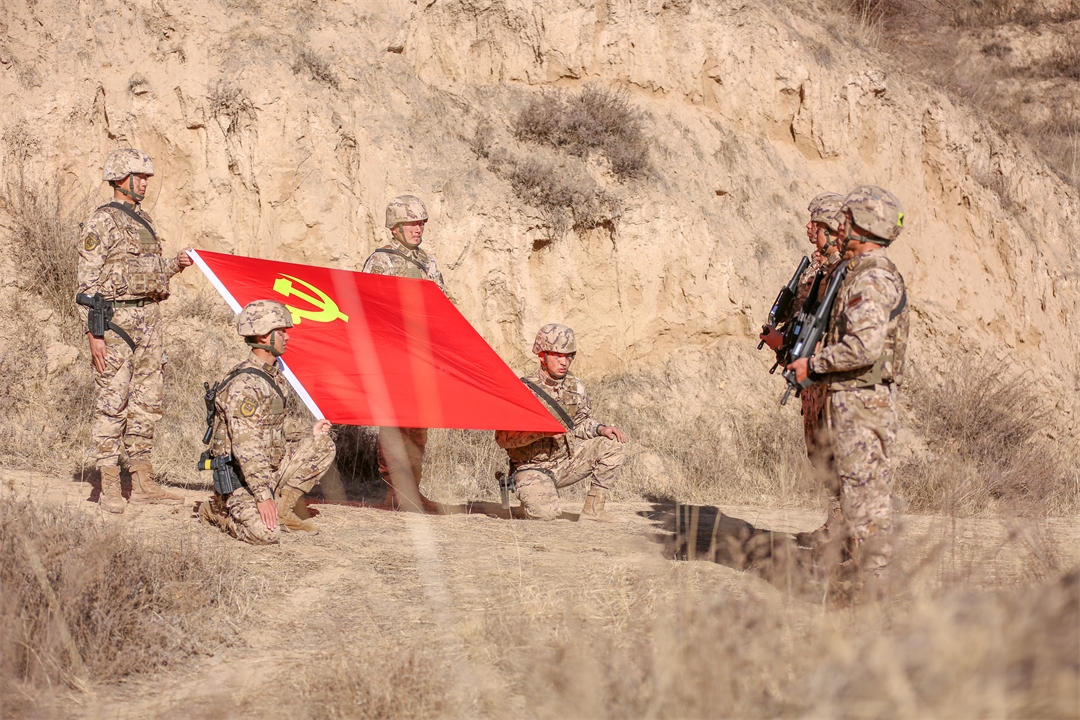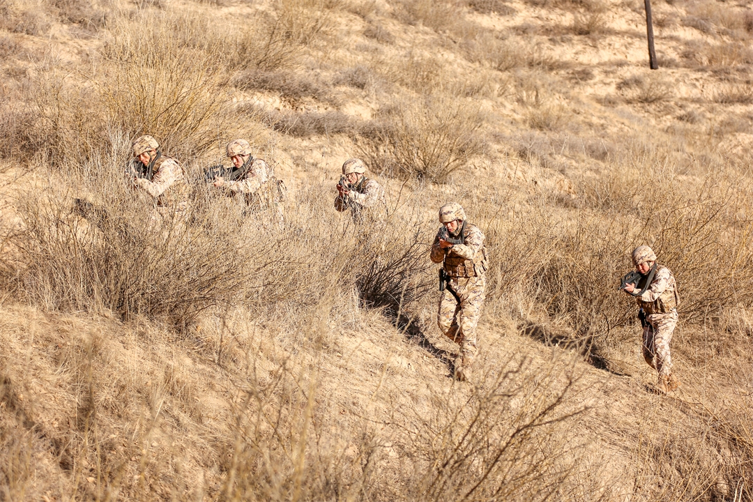 圖為官兵隱蔽接近任務(wù)區(qū)域。