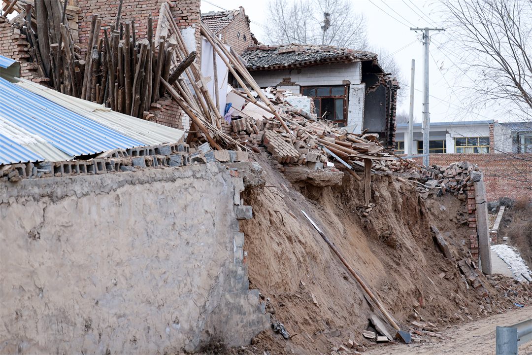 圖為12月19日,甘肅省臨夏回族自治州積石山縣劉集鄉(xiāng)陽屲村震后房屋受損情況。