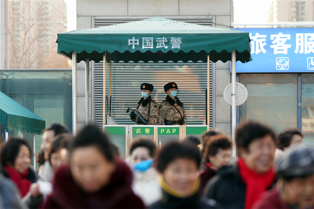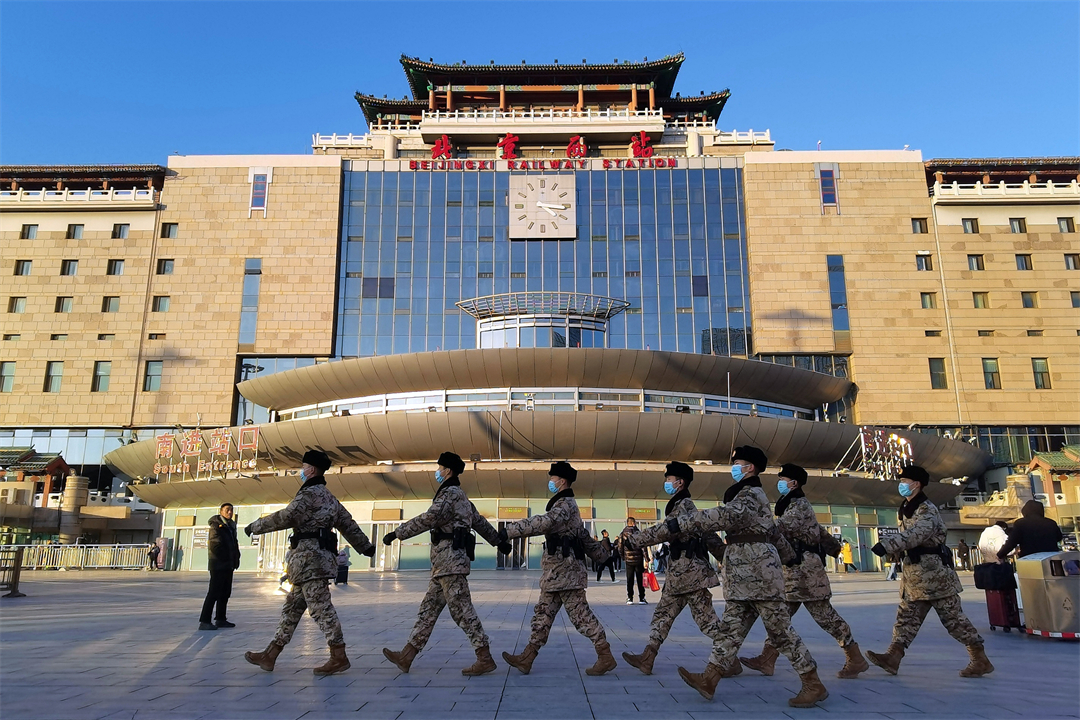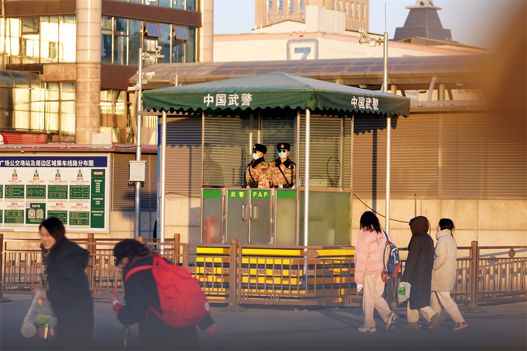2024年元旦假期,北京景區(qū)、交通樞紐客流量大幅增加。擔(dān)負(fù)北京西站、北京豐臺(tái)站守衛(wèi)和定點(diǎn)警戒任務(wù)的武警北京總隊(duì)執(zhí)勤第六支隊(duì)官兵全時(shí)堅(jiān)守戰(zhàn)位,保障旅客平安出行。