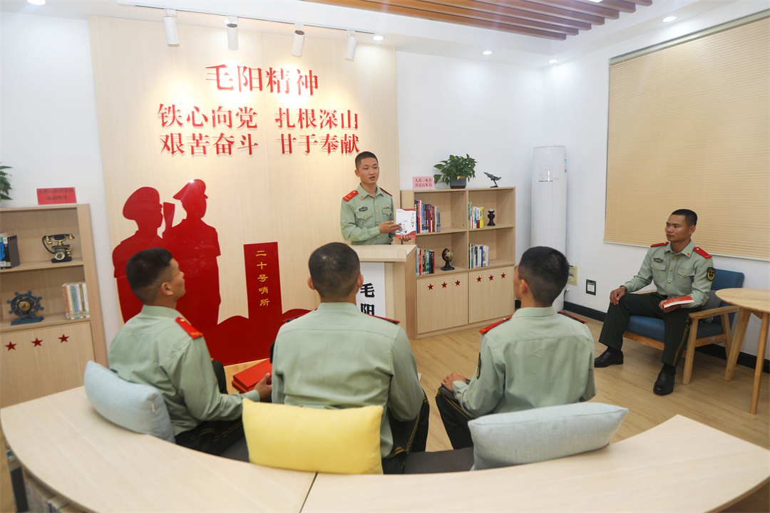 執(zhí)勤六中隊(duì)現(xiàn)任指導(dǎo)員金生清楚記得,今年3月到中隊(duì)任職時(shí)參加黨支部會(huì)議的場景。支部成員沒進(jìn)會(huì)議室,而是來到五指山革命根據(jù)地紀(jì)念園?!叭温毟刹恐挥蓄I(lǐng)會(huì)艱苦奮斗、自立自強(qiáng)、不屈不撓的瓊崖精神內(nèi)涵,才能在工作中捋清思路、抓準(zhǔn)重點(diǎn)……”時(shí)任指導(dǎo)員楊興科說。