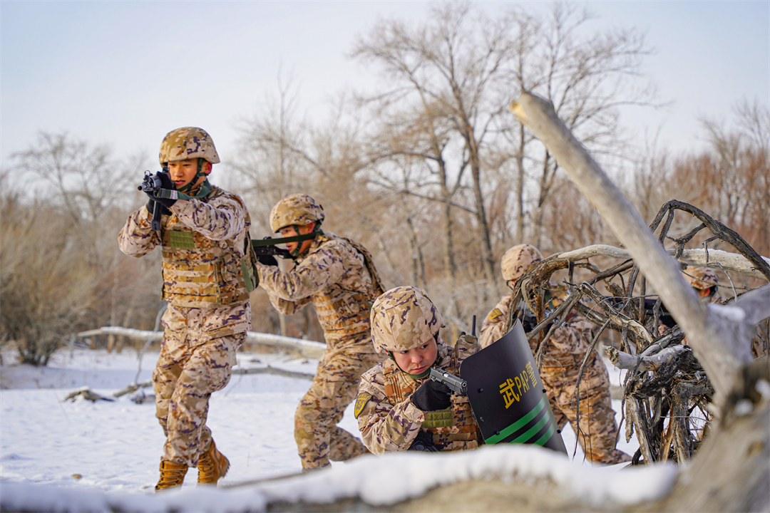 開訓首日,武警部隊數(shù)十萬將士云集沙場,武警部隊黨委號召全體官兵立起練兵備戰(zhàn)鮮明導向,堅持以戰(zhàn)領(lǐng)訓、大抓基礎(chǔ)訓練,創(chuàng)新合成訓練、深化科技練兵。武警內(nèi)蒙古總隊某支隊依托駐地氣候和地形條件,模擬真實戰(zhàn)場環(huán)境,組織官兵開展實戰(zhàn)化課目訓練,全面錘煉部隊在實戰(zhàn)下的綜合作戰(zhàn)能力。