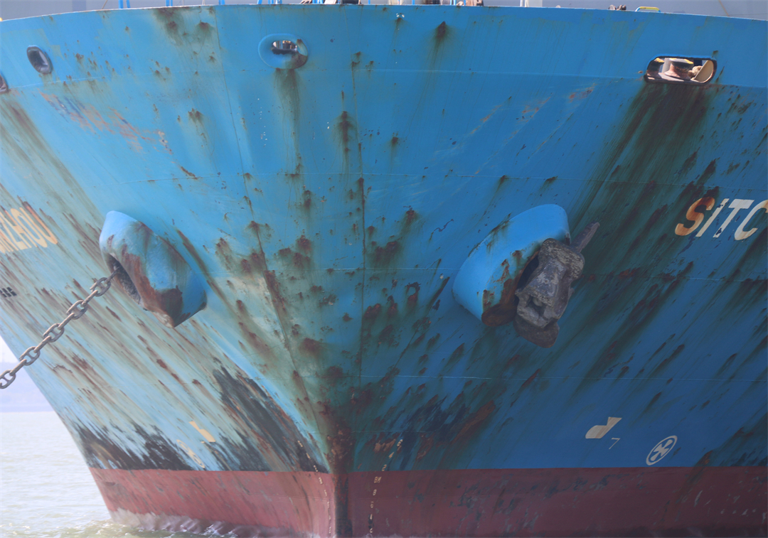 專案組聯(lián)合當(dāng)?shù)毓?、海事與工信執(zhí)法部門,一同對(duì)該事發(fā)海域附近進(jìn)行搜查,發(fā)現(xiàn)拋錨嫌疑船。執(zhí)法員依法登臨嫌疑船進(jìn)行檢查,發(fā)現(xiàn)該船左錨機(jī)及左錨鏈有新鮮磨損痕跡,防護(hù)鋼纜也被人為換新,有重大作案嫌疑,隨即將該船押解回汕頭港碼頭作進(jìn)一步調(diào)查。