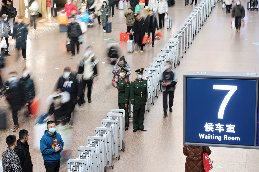 北京西站作為全國客運量最大的火車站之一,預(yù)計春運期間將發(fā)送旅客490余萬人次。為有效應(yīng)對今年春運面臨的新情況、新特點,北京西站執(zhí)勤武警提前與重點站區(qū)管委會、鐵路公安等部門建立溝通預(yù)警機制,實現(xiàn)軍地信息數(shù)據(jù)共享,實時準(zhǔn)確掌握客流量及交通運力,優(yōu)化勤務(wù)部署,精準(zhǔn)投送一線執(zhí)勤兵力,匯集軍地力量共同為群眾營造“安全、舒適、便捷”的出行環(huán)境。