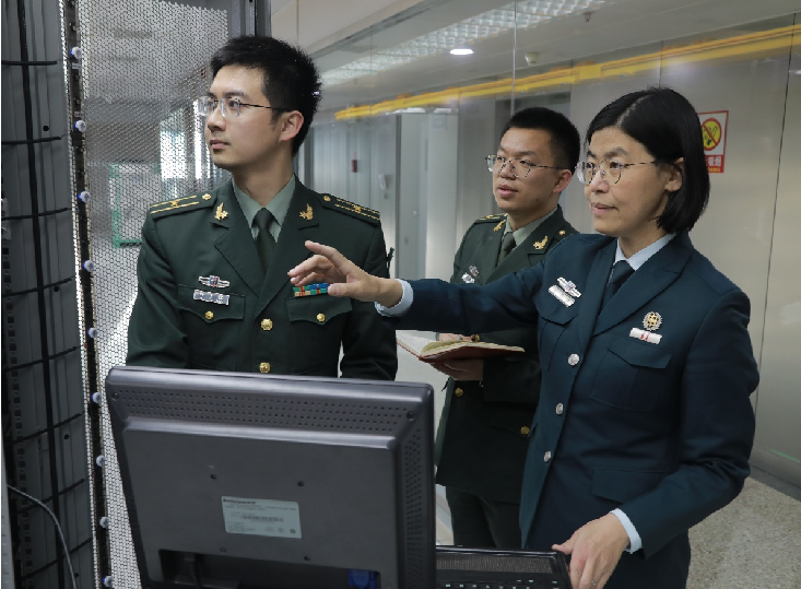 春夏之交,白曉穎一行來(lái)到戈壁大漠邊防某部,深入指揮所、測(cè)試站、控制室一線,與官兵面對(duì)面座談交流;結(jié)合最新科研成果,為部隊(duì)網(wǎng)信系統(tǒng)建設(shè)、數(shù)據(jù)資源使用等方面出謀劃策。