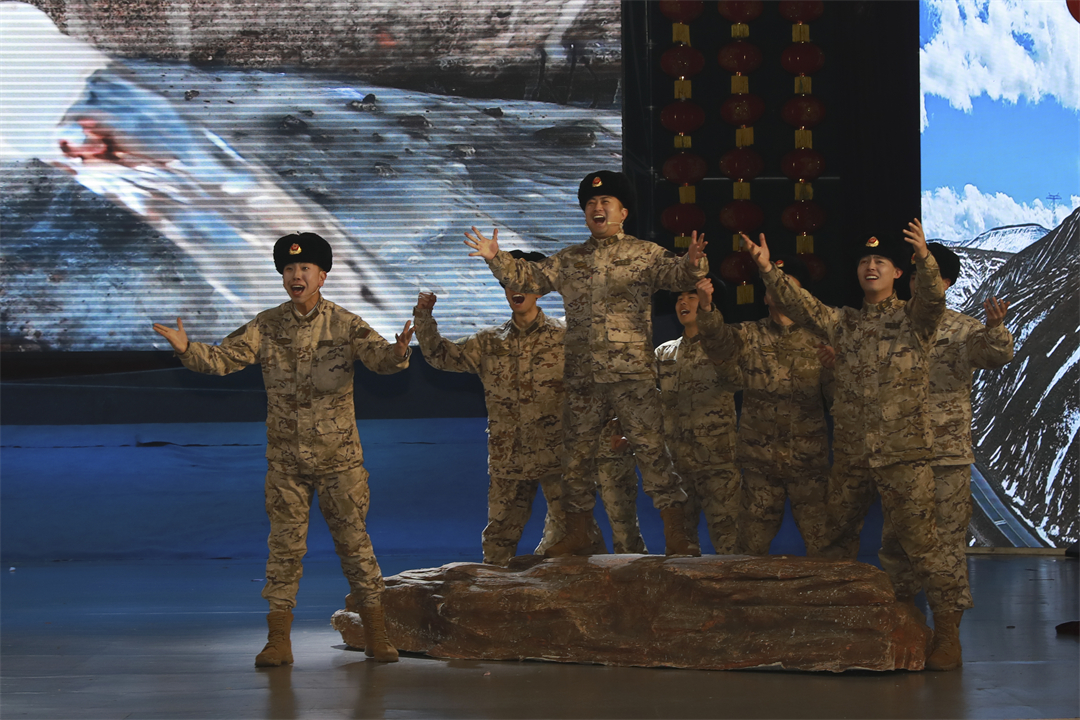 情景微劇《云端不“凍”泉》受到官兵一致好評。該劇以總隊(duì)為駐守在高寒高海拔地區(qū)官兵成功打出兩口水井的事例為劇本,生動講述了在總隊(duì)黨委關(guān)心關(guān)懷下,各級持續(xù)攻堅(jiān)、排除萬難,下大力解決艱苦偏遠(yuǎn)地區(qū)官兵生活困難等問題。微劇中,當(dāng)海拔4868米、武警部隊(duì)海拔最高的昆侖山隧道2號哨所水井出水時(shí),官兵們載歌載舞、舉杯暢飲的美好場面振奮人心,全場爆發(fā)出熱烈掌聲。