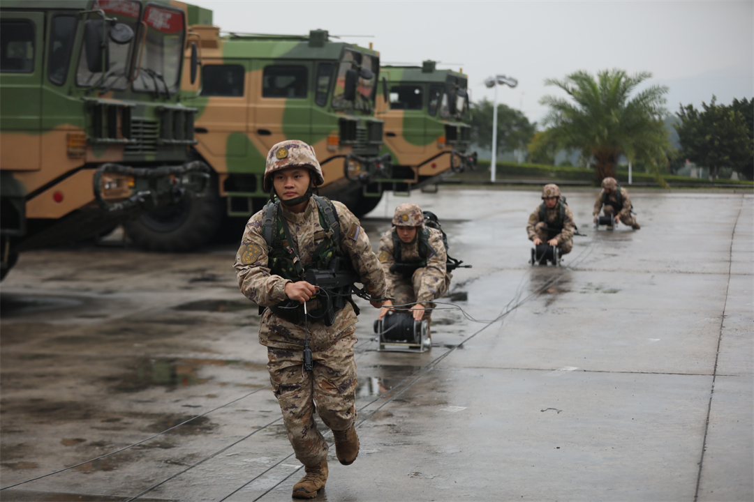 圖為東部戰(zhàn)區(qū)海軍某團(tuán)組織突擊群指揮員資質(zhì)認(rèn)證考核,號手快速鋪設(shè)光纜。付琪皓 攝