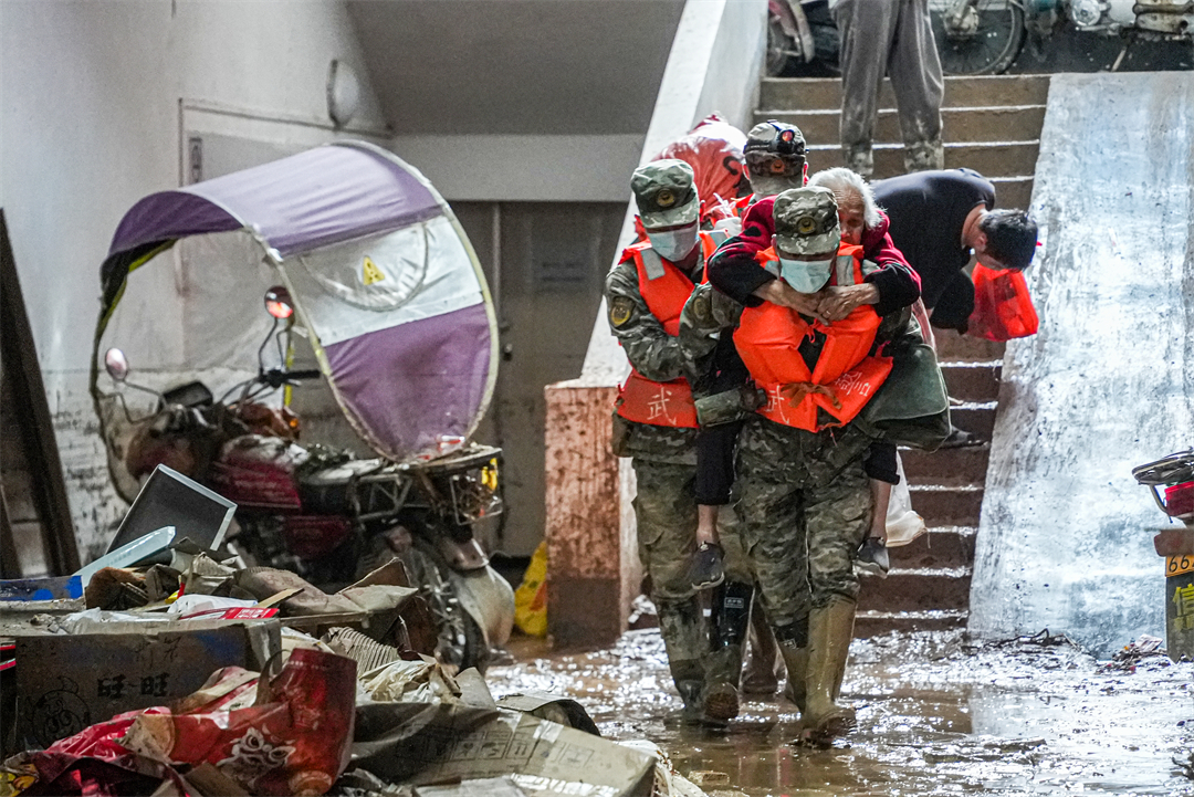 圖為武警廣東總隊(duì)韶關(guān)支隊(duì)官兵派出20名官兵對(duì)江灣鎮(zhèn)城區(qū)片區(qū)進(jìn)行搜樓,轉(zhuǎn)移受難群眾及物資。