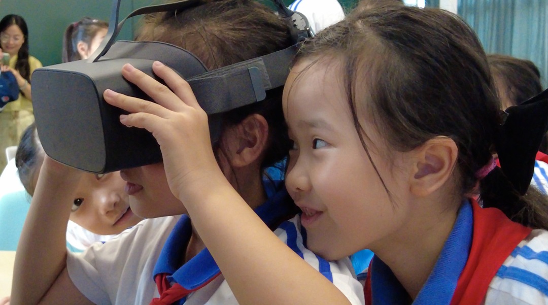圖為同學們體驗禁毒VR體驗設(shè)備。