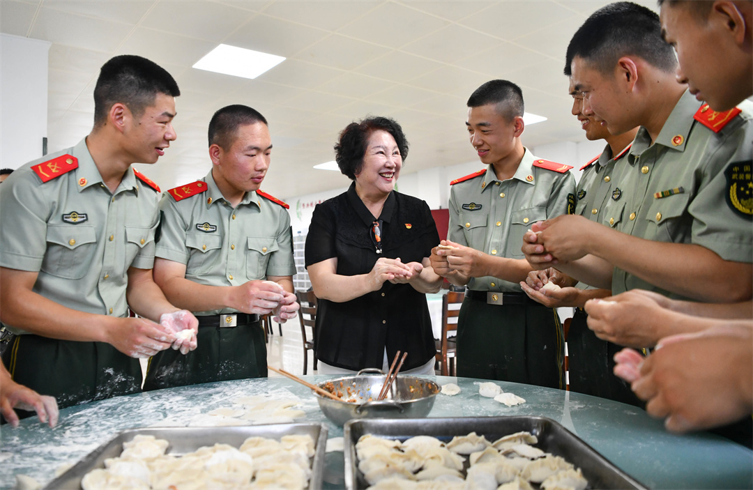 圖為朱呈镕與支隊(duì)官兵一起包餃子。