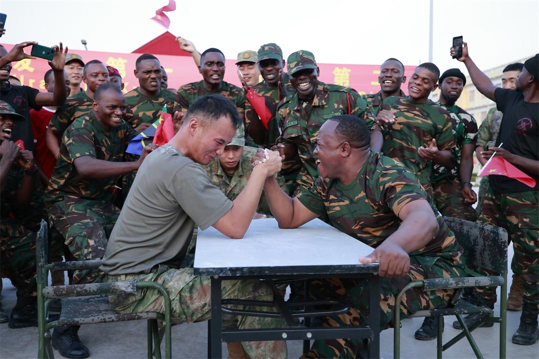 比賽結(jié)束后,雙方領(lǐng)導(dǎo)為優(yōu)勝團(tuán)隊(duì)合影留念,兩國(guó)官兵遲遲不愿離場(chǎng),又自發(fā)開(kāi)展了軍體拳、捕俘拳等交流活動(dòng)。大家仔細(xì)觀看,躍躍欲試,歡呼聲和加油聲此起彼伏,一浪蓋過(guò)一浪。中方官兵現(xiàn)場(chǎng)主動(dòng)教學(xué),將中華優(yōu)秀傳統(tǒng)文化介紹給坦方友人,大家在友好交流中不斷深化了解,在歡聲笑語(yǔ)間感受中華文化的獨(dú)特魅力。