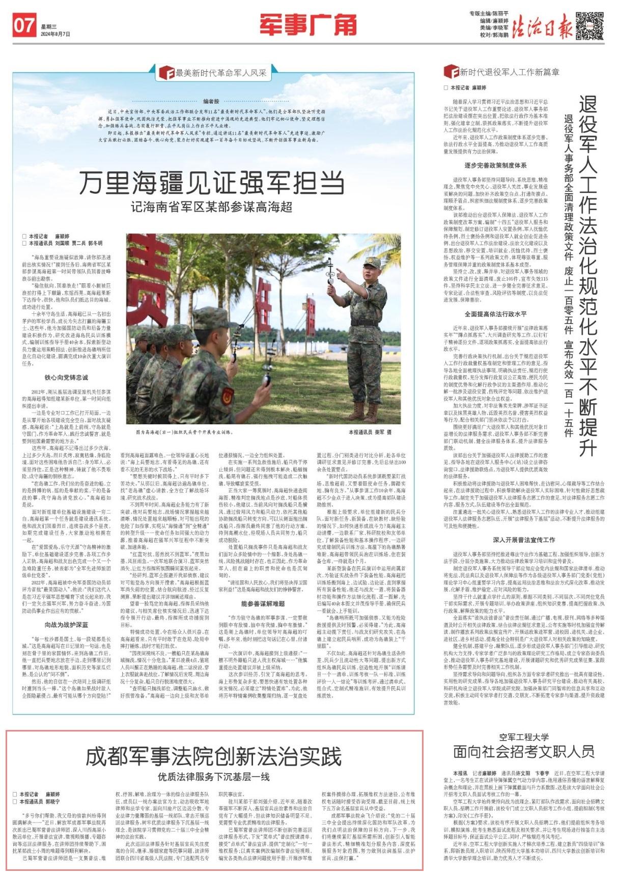 成都軍事法院余飛介紹說:“黨的二十屆三中全會提出持續(xù)深化國防和軍隊改革,為我們點明法治保障的目標方向。下一步,我們將繼續(xù)緊盯基層所需所困,創(chuàng)新引入智能普法形式,精細精準劃分服務內(nèi)容,深度拓展服務對象范圍,努力做到法潤基層、法護官兵、法保打贏?!?/p>