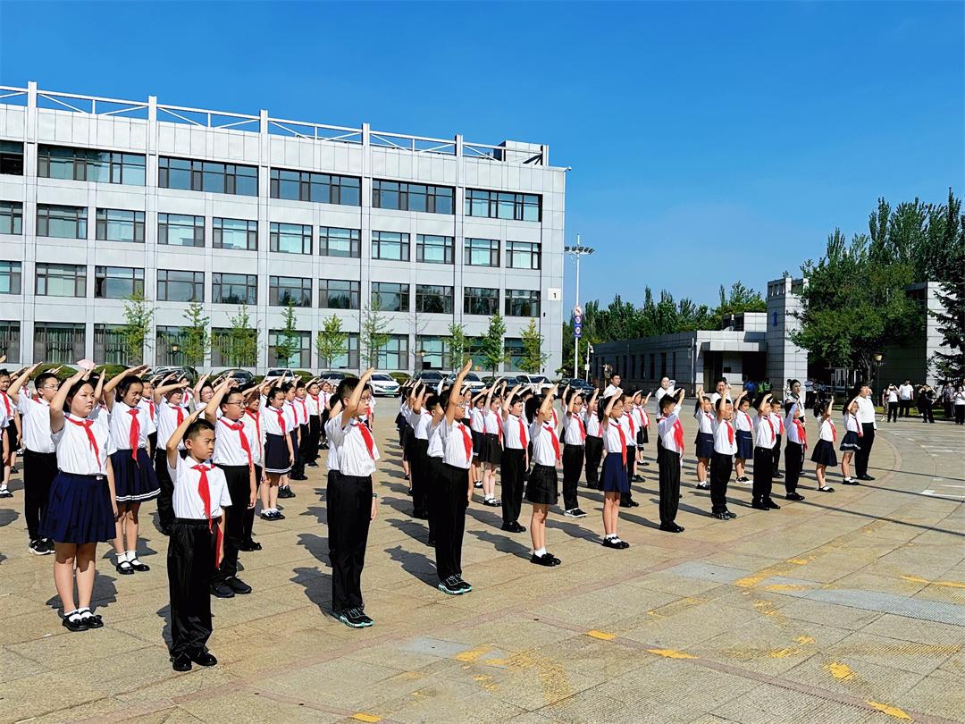 國旗飄揚(yáng),催人奮進(jìn)?!拔覀円獦淞⑦h(yuǎn)大的理想,堅定信念、奮發(fā)圖強(qiáng),長大以后成為航天英雄和一汽工匠這樣的榜樣,科技助力未來,傳承紅旗精神,把我們的家鄉(xiāng)吉林省建設(shè)得更加美好。”少先隊員代表王奕皓說。