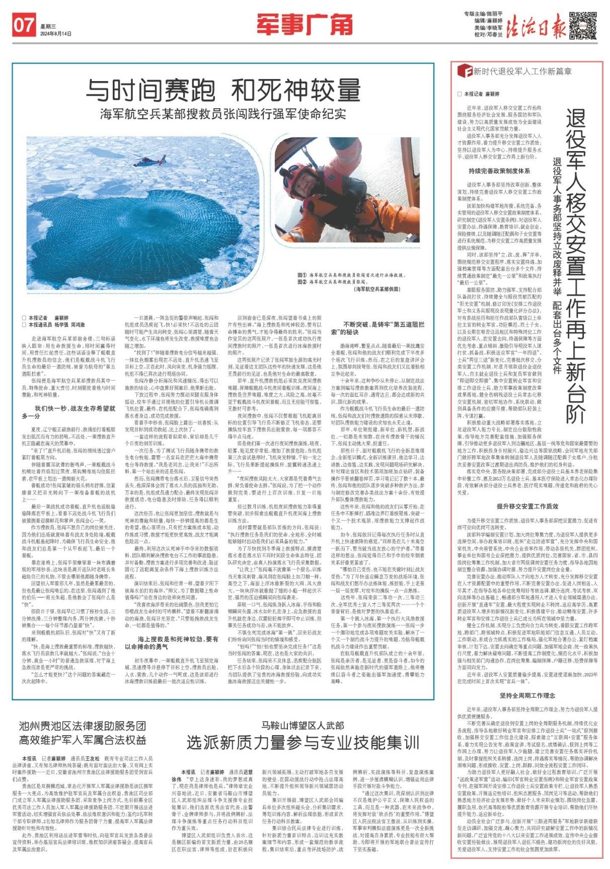 完善安置辦法,推動軍隊人才向地方人才轉(zhuǎn)變。充分發(fā)揮移交安置在人才資源配置中的重要作用,不斷完善安置辦法,促進人崗相適、人盡其才。在指導各地各單位統(tǒng)籌用好考核選調(diào)、賦分選崗、考試考核、雙向選擇等辦法基礎上,暢通部分軍地通用人才進入專業(yè)領域渠道辦法,創(chuàng)新開展“直通車”安置,最大程度實現(xiàn)轉(zhuǎn)業(yè)不轉(zhuǎn)崗。適應高學歷、高素質(zhì)退役軍人增多的新情況新變化,積極搭建平臺,推動精準安置,許多轉(zhuǎn)業(yè)軍官和安排工作退役士兵已成長為所在領域中堅力量。