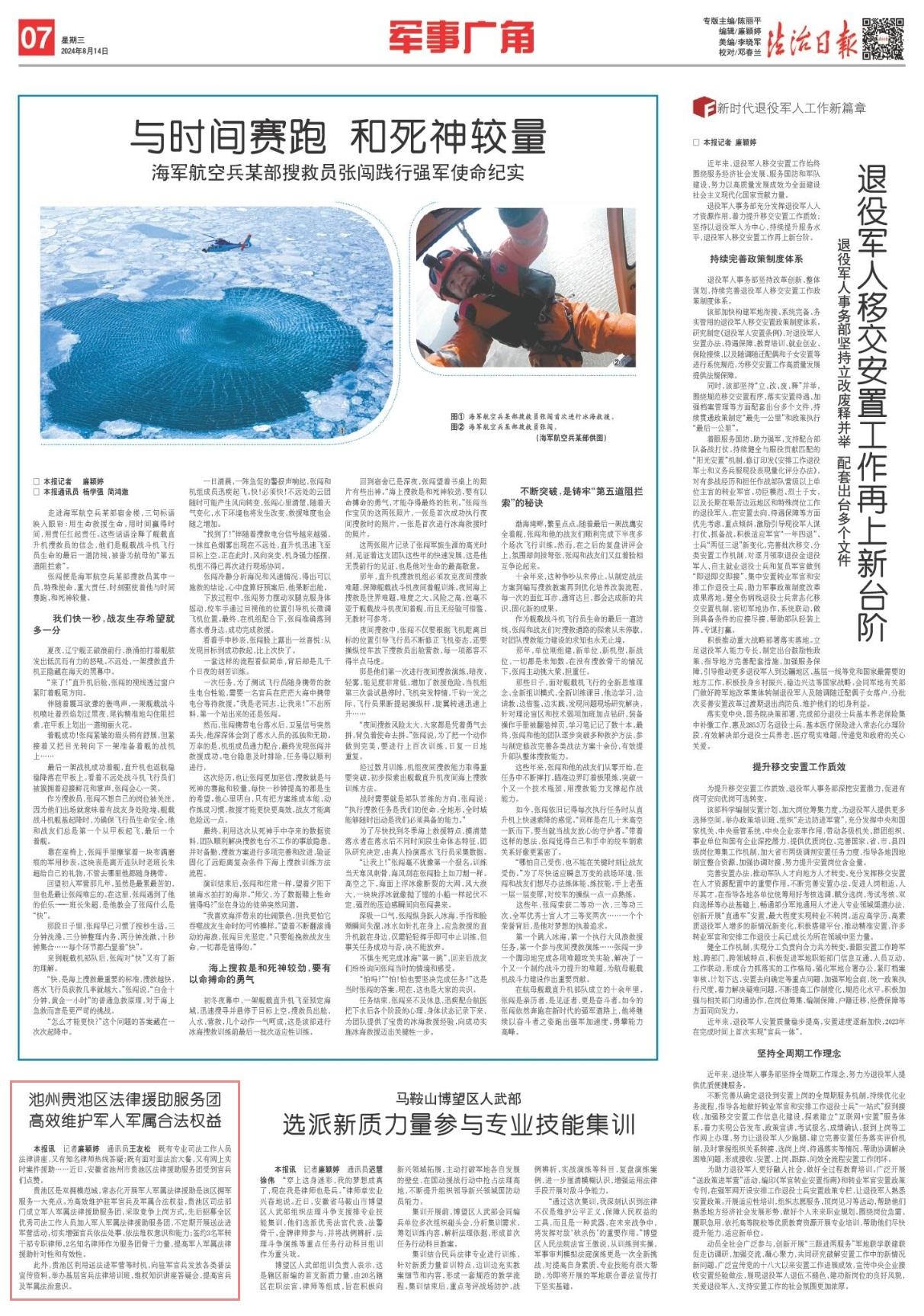 既有專業(yè)司法工作人員法律講座,又有知名律師熱線答疑;既有面對面法治大餐,又有網上實時案件援助……近日,安徽省池州市貴池區(qū)法律援助服務團受到官兵們點贊。
