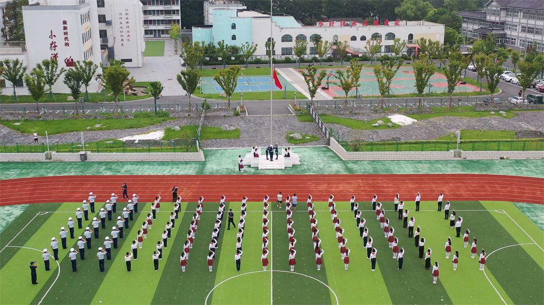 遨游太空的五星紅旗在淮安市新安小學(xué)冉冉升起