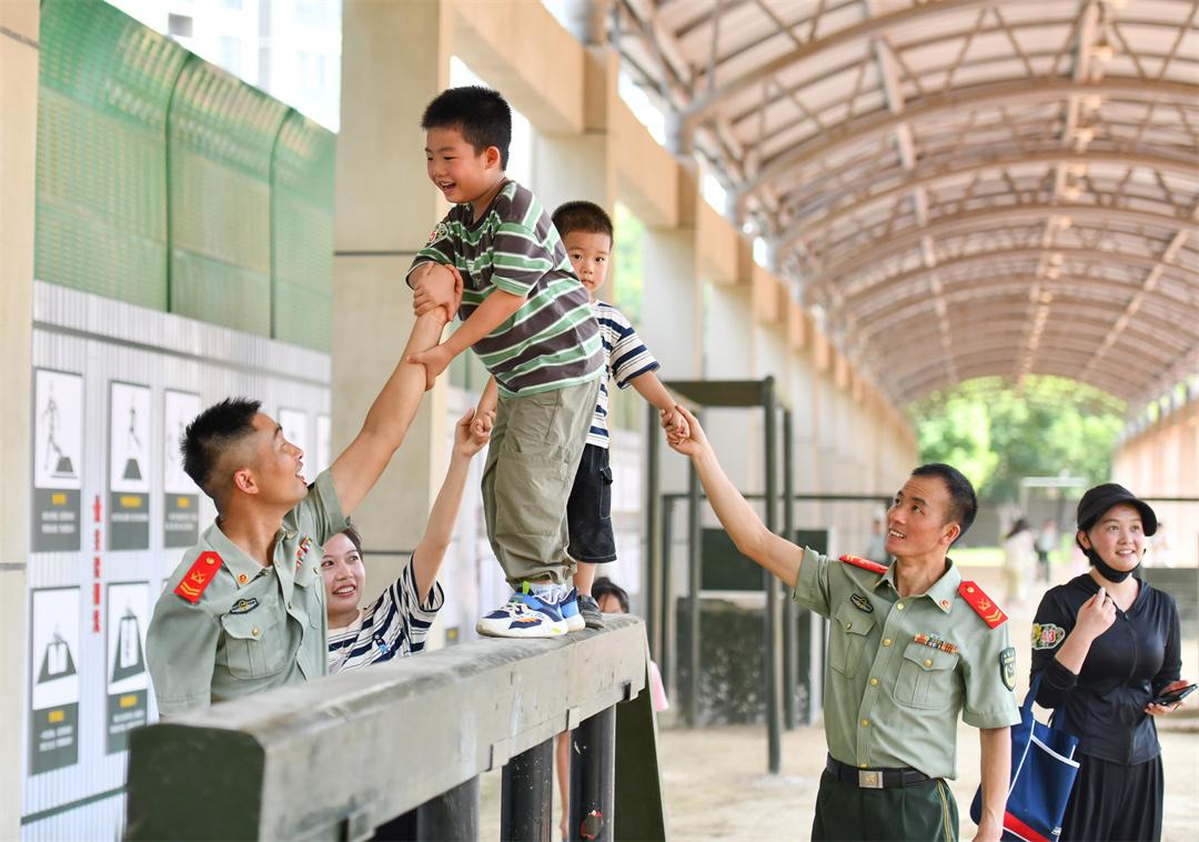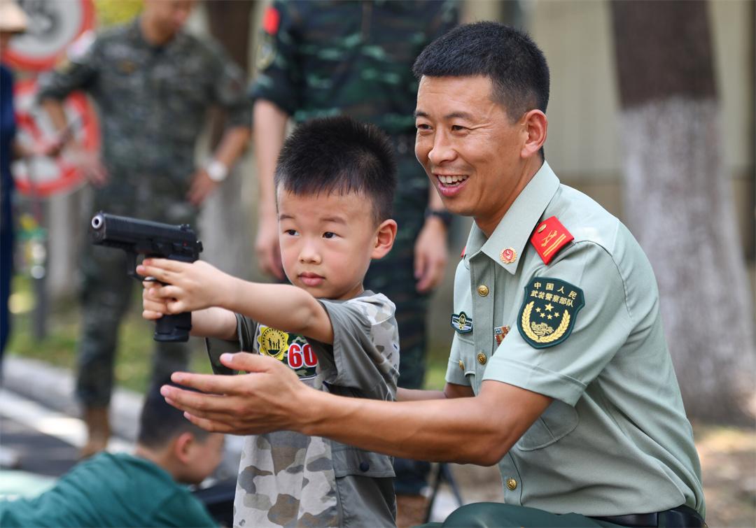 圖為在武警合肥支隊營區(qū),“軍嫂軍娃進軍營”活動現(xiàn)場。