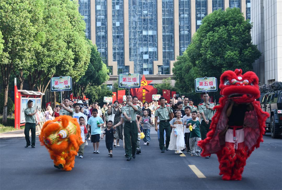 官兵列隊、鑼鼓喧天、舞獅開道……歡迎儀式隆重?zé)崃?,官兵與軍嫂軍娃揮手互動,許多軍娃發(fā)出歡呼聲和驚嘆聲?!斑@種儀式感讓我們真切感受到軍人榮光、軍屬榮耀。”軍嫂張文娟動情地說。