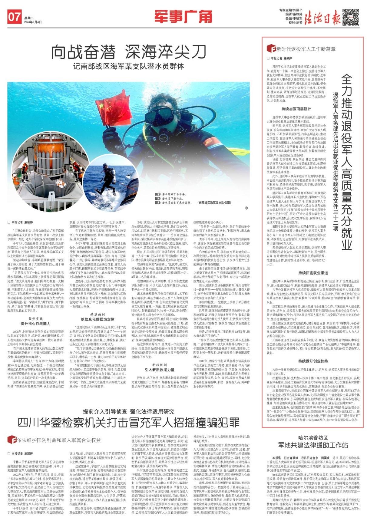為充分發(fā)揮退役軍人優(yōu)點特長,退役軍人事務(wù)部引導(dǎo)退役軍人到重點領(lǐng)域、重點行業(yè)就業(yè)。實施消防員、軍隊文職人員專項招錄;開展“浪花計劃”定向培養(yǎng)退役軍人海員;推進“兵教師”專項培養(yǎng);推動設(shè)立“國防教育輔導(dǎo)員”新職業(yè)。