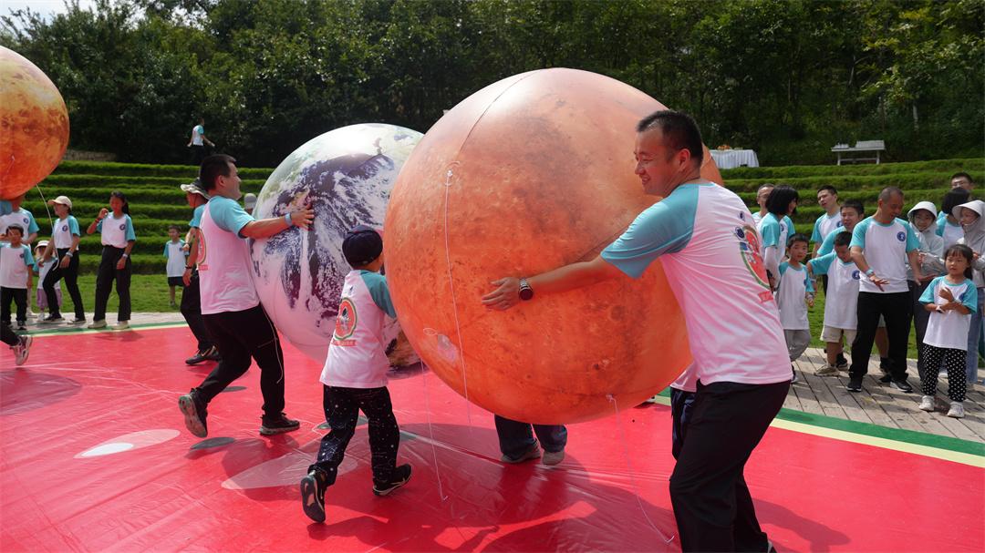 “加油!加油!加油!”在文昌銅鼓嶺測(cè)控點(diǎn),趣味套圈游戲?qū)⒂H子活動(dòng)引向高潮。瞄準(zhǔn)、蓄力、拋出……在與爸爸媽媽的協(xié)作和挑戰(zhàn)中,一個(gè)個(gè)航天娃沉浸在歡樂的海洋里。隨著拋出的圓圈套中心儀獎(jiǎng)品,小朋友們喜笑顏開,帶著戰(zhàn)利品凱旋。